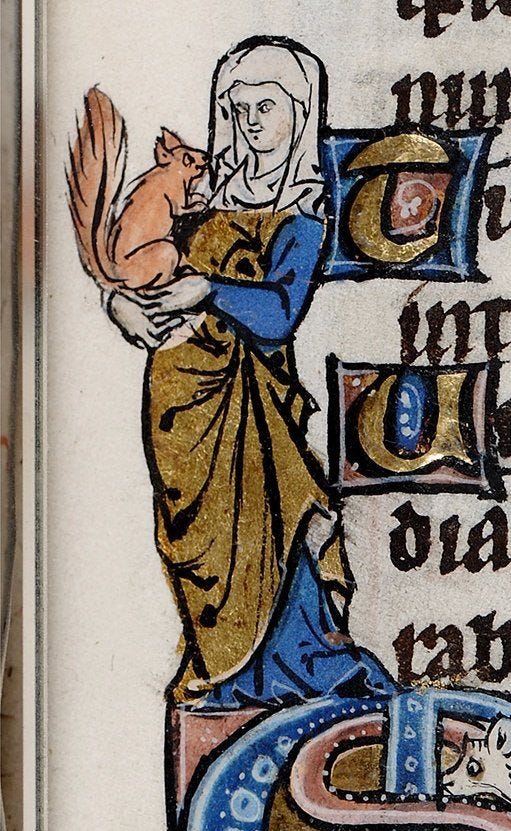Let’s be at least as cheerful as a medieval lady communing with her pet squirrel!