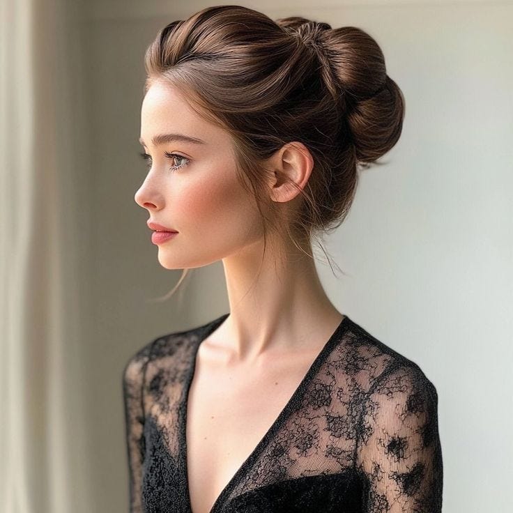 In no circumstance is this topknot more attractive than a bun lower down, one that complements the lines of your cheekbones, jaw, and forehead.